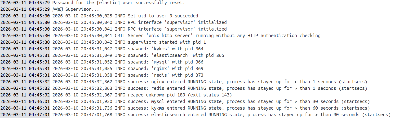知识库镜像运行起来之后,虽然状态是已经在运行,但实际上要等几分钟才能全部启动完成。